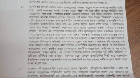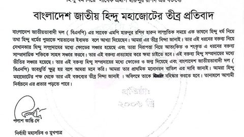 দুর্গাপূজা নিয়ে স্বরাষ্ট্র উপদেষ্টার মন্তব্য প্রত্যাহারের দাবিতে ৪৫ প্রবাসী বাংলাদেশি সংগঠনের বিবৃতি