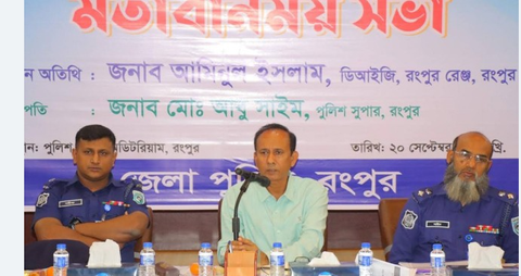 আসন্ন শারদীয় দুর্গাপূজা উপলক্ষে সাম্প্রদায়িক সম্প্রীতি ও শান্তিপূর্ণ পরিবেশ নিশ্চিত করতে বাংলাদেশ পুলিশের রংপুর রেঞ্জের ডিআইজি মো. আমিনুল ইসলাম গুরুত্বপূর্ণ নির্দেশনা দিয়েছেন। শনিবার (২০ সেপ্টেম্বর) বিকেলে রংপুর পুলিশ লাইন্স অডিটোরিয়ামে পূজা উদযাপন কমিটির নেতৃবৃন্দের সঙ্গে অনুষ্ঠিত মতবিনিময় সভায় তিনি এ আহ্বান জানান।