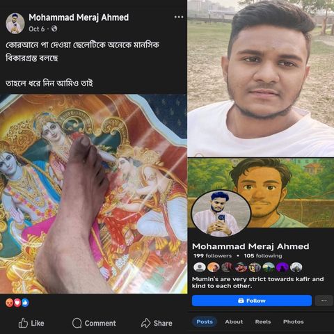 ঢাকা জেলার কেরানীগঞ্জে ঘটে গেছে এক চাঞ্চল্যকর ঘটনা। সামাজিক যোগাযোগমাধ্যমে ভাইরাল হওয়া এক ছবিতে দেখা গেছে, এক তরুণ প্রকাশ্যে সনাতন ধর্মের পূজ্য দেবতা লক্ষ্মীনারায়ণ-এর ছবির উপর পা দিয়ে অবমাননাকর ভঙ্গিতে ছবি তুলেছে।
