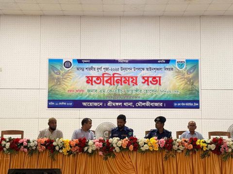 আসন্ন শারদীয় দুর্গাপূজা-২০২৫ উপলক্ষে শ্রীমঙ্গল উপজেলার আইনশৃঙ্খলা পরিস্থিতি সুরক্ষিত রাখতে ও সামগ্রিক নিরাপত্তা ব্যবস্থা জোরদার করার লক্ষ্যে ১১ সেপ্টেম্বর বিকেলে শ্রীমঙ্গল জেলা পরিষদ অডিটোরিয়ামে এক মতবিনিময় সভা অনুষ্ঠিত হয়।