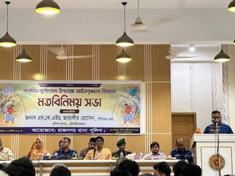 শনিবার (১৩ সেপ্টেম্বর) বিকাল ৩টায় রাজনগর উপজেলা পরিষদ হলরুমে আসন্ন শারদীয় দুর্গাপূজা-২০২৫ উপলক্ষে রাজনগর থানার আয়োজনে আইনশৃঙ্খলা বিষয়ক মতবিনিময় সভা অনুষ্ঠিত হয়।