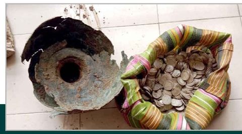কলসিতে মোট ১,৮৭৬টি এক রুপি দামের ভারতীয় প্রাচীন মুদ্রা ছিল, যার মোট ওজন প্রায় ২২.৯ কেজি। মুদ্রাগুলোর ওপর খচিত রয়েছে রাজা-রানির মুকুট ও বিভিন্ন প্রতীক। এরা মূলত আঠারো ও উনিশ শতকের সময়ের বিভিন্ন সাল উল্লেখিত মুদ্রা।