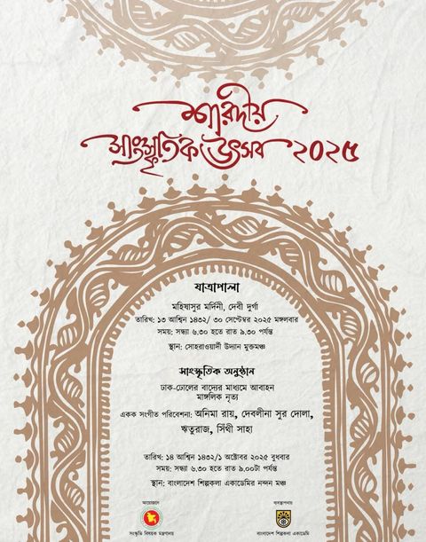 সংস্কৃতি বিষয়ক মন্ত্রণালয় ও শিল্পকলা একাডেমির যৌথ উদ্যোগে শুরু হচ্ছে ‘শারদীয় সাংস্কৃতিক উৎসব ২০২৫’