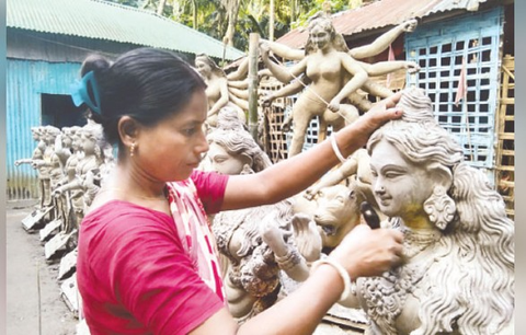 দীপ্তির হাতে দীপ্ত প্রতিমা : উত্তরবঙ্গের পূজামণ্ডপে নারী শিল্পীর নৈপুণ্যের ছাপ