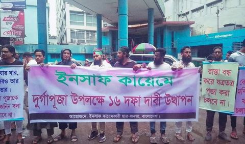 দুর্গাপূজা উপলক্ষে ১৬ দফা দাবি জানাল ‘ইনসাফ কায়েমকারী ছাত্র–জনতা’