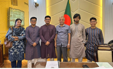 সাক্ষাৎকালে ডাকসুর সাহিত্য ও সাংস্কৃতিক সম্পাদক মুসাদ্দিক আলী ইবনে মোহাম্মদ, মুক্তিযুদ্ধ ও গণতান্ত্রিক আন্দোলন সম্পাদক ফাতিমা তাসনিম জুমা এবং কার্যনির্বাহী সদস্য সর্ব মিত্র চাকমা উপস্থিত ছিলেন।