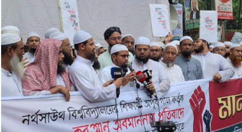 কোরআন শরিফ অবমাননার অভিযোগে গ্রেপ্তার নর্থসাউথ বিশ্ববিদ্যালয়ের শিক্ষার্থী অপূর্ব পালকে সর্বোচ্চ শাস্তি হিসেবে ফাঁসি দেওয়ার দাবি জানিয়েছে জাতীয় ওলামা মাশায়েখ আইম্মা পরিষদ। একইসঙ্গে কোরআন শরিফ, হযরত মুহাম্মদ (সা.) ও ধর্মের অবমাননার জন্য রাষ্ট্রীয়ভাবে ফাঁসি দেওয়ার বিধান রেখে আইন প্রণয়ন করতে অন্তর্বর্তী সরকারের প্রতি আহ্বান জানিয়েছে সংগঠনটি। সোমবার (৬ অক্টোবর) রাজধানীর জাতীয় প্রেস ক্লাবের সামনে পরিষদের উদ্যোগে আয়োজিত মানববন্ধন থেকে এই দাবিগুলো জানানো হয়।