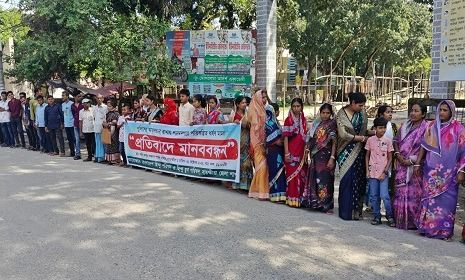 শ্যামনগরে মামলা তুলে নিতে রাজী না হওয়ায় পরিকল্পিত ধর্ষণ মামলা, প্রতিবাদে মানববন্ধন