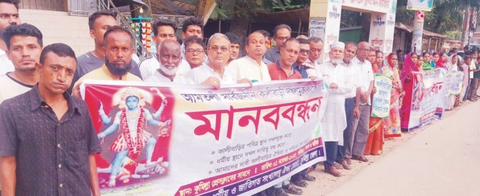 কুমিল্লা আমতলী কালী বাড়ির জায়গা দখলমুক্ত করার দাবীতে সংখ্যালঘু ঐক্য মোর্চার মানববন্ধন