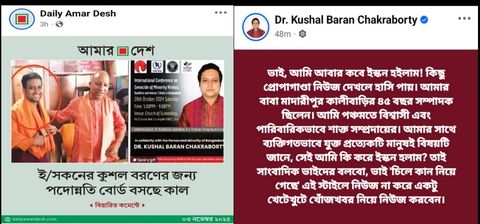 ইসকন ঘনিষ্ঠ বলে মিথ্যা সংবাদ প্রচার:‘আমার দেশ’ সংবাদমাধ্যমের বিভ্রান্তিকর প্রতিবেদন ঘিরে ড. কুষল বরণের স্পষ্ট জবাব – “আমি শাক্ত, ইসকন নই”