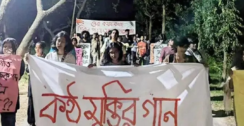 “সংগীত ও শরীরচর্চা শিক্ষক নিয়োগ বাতিল, নাট্যোৎসব বন্ধ, মন্দিরে হামলা কিংবা মঙ্গল শোভাযাত্রার নাম পরিবর্তনের উদ্যোগ—এসবই আমাদের সাংস্কৃতিক সহাবস্থানের ওপর আঘাত। মুক্তিযুদ্ধ থেকে ২০২৪ সালের গণঅভ্যুত্থান পর্যন্ত আমাদের শক্তির মূল ছিল সংস্কৃতি। এই আক্রমণ কেবল সংস্কৃতির নয়, আমাদের অস্তিত্বের ওপর। আমরা গান দিয়ে সেই অন্যায়ের প্রতিবাদ জানাচ্ছি এবং সুদান, ফিলিস্তিনসহ বিশ্বজুড়ে চলমান সব গণহত্যার বিরুদ্ধে ঐক্যের আহ্বান জানাচ্ছি।”