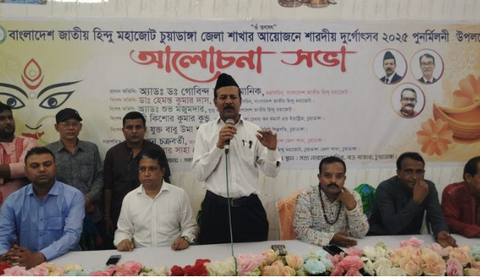 সভায় সভাপতিত্ব করেন বাংলাদেশ জাতীয় হিন্দু মহাজোট চুয়াডাঙ্গা জেলা শাখার আহ্বায়ক স্বপন চক্রবর্তী এবং সঞ্চালনা করেন সদস্য সচিব চির কুমার সাহা (কনক)।