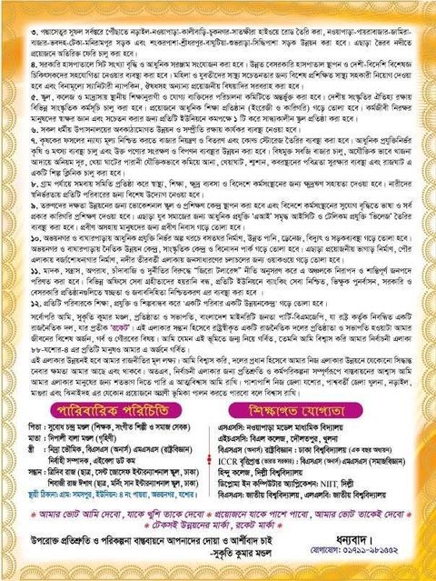 “নিজের ভোট নিজেই দিন, আপনাদের প্রিয় বন্ধু, সং, সহযোগী, শিক্ষিত, যোগ্য, আদর্শ ও সৎ মানুষ হিসেবে আমাকে পাশে রাখুন। আমি প্রতিশ্রুতি দিচ্ছি—আমি শুধু উন্নয়ন নয়, মানবতার রাজনীতি করতে চাই।”
