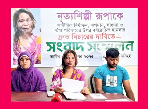 ময়মনসিংহ শহরের কোতোয়ালী মডেল থানার একেবারে পাশেই নৃত্যশিল্পী রূপা আক্তারকে বেঁধে নির্মমভাবে নির্যাতনের অভিযোগ উঠেছে স্থানীয় প্রভাবশালী কয়েকজন প্রতিবেশীর বিরুদ্ধে। অভিযোগে বলা হয়েছে, রূপাকে বেঁধে তার মাথার চুল কেটে ফেলা হয় এবং মুখে কালি মাখিয়ে দেওয়া হয়। এই মর্মান্তিক ঘটনাটি ঘটেছে বুধবার, ১২ নভেম্বর দুপুরে, শহরের বড়কালীবাড়ি এলাকার ৯ নম্বর ওয়ার্ডে।