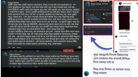 অভিযোগ সূত্রে জানা যায়, সম্প্রতি ‘VEDA'S Ultimate Truth’ নামক একটি সনাতনী পেজে শ্রাবণ আহমেদ নামক ওই ব্যক্তি মেসেজ পাঠিয়ে হিন্দু নারীদের অশ্লীল ছবি ও ভিডিও প্রেরণ করে। এর পরপরই সে পেজটির এডমিনদের উদ্দেশ্য করে লেখে, “তোমাদের মেয়েদের আমি টার্গেট করি, পারলে কিছু করে দেখাও।”