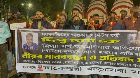 ময়মনসিংহের ভালুকায় দিপু দাসকে নির্মমভাবে হত্যার প্রতিবাদে ঢাকেশ্বরী মাতৃসেবা সংঘ নীরব মানববন্ধনের আয়োজন করেছে।